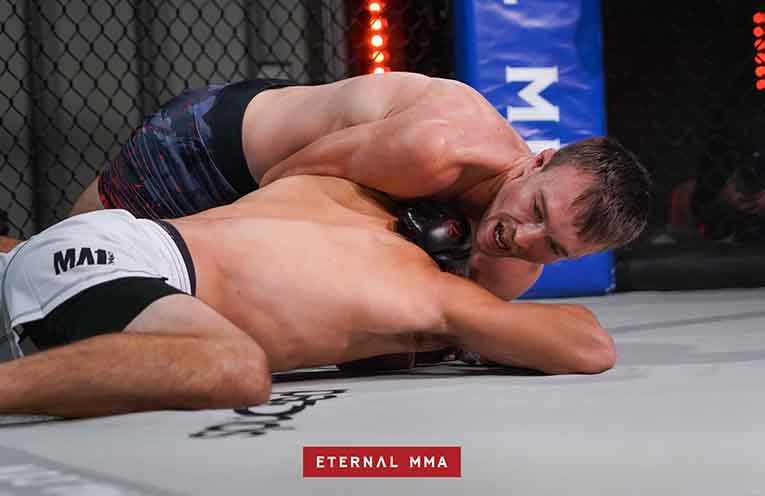 Featherweight champion Chris won with a D’Arce choke in the 59th second of round one, taking his undefeated record to 7 wins – 0 losses.