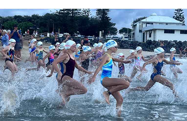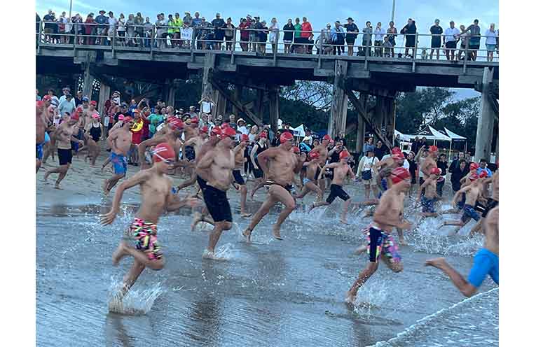 The annual ocean swims at the Jetty are always a huge community event, now staged by Sawtell Surf Life Saving Club (SSLSC) and supported by masses of spectators.