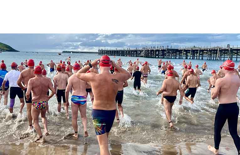 Ranging in age from eight to 88, swimmers took part in three events with 180 entrants hitting the water first in the 600m swim followed by 66 excited young entrants in the 300m junior swim and, finally, as the morning sun rose, 199 took to the water for the 2km swim.